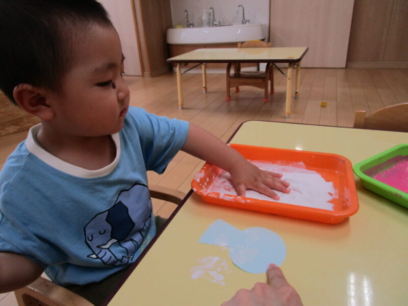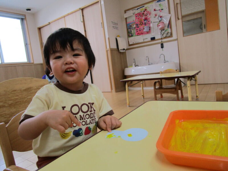 指スタンプと言いつつも、掌でダイナミックにスタンプしてくれる子もいました。