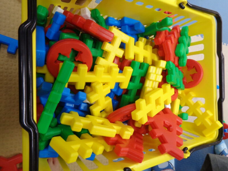 思い思いにブロックを組み合わせており、特に乗り物を表すお子さまが多く見られます。