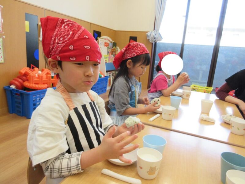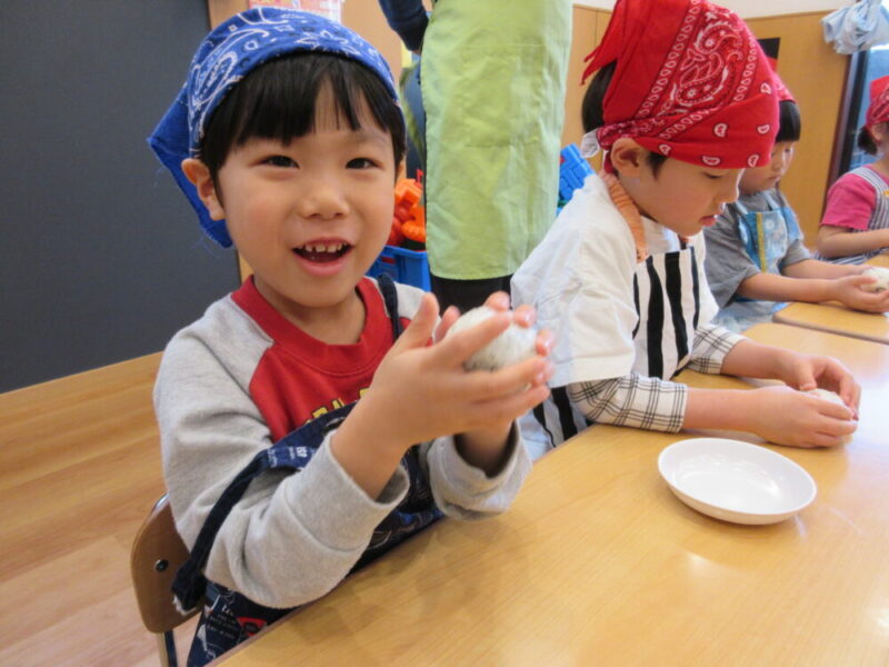 握り終わったおにぎりを「みてみて!上手にできたでしょ!」と嬉しそうに先生に見せてくれました♪