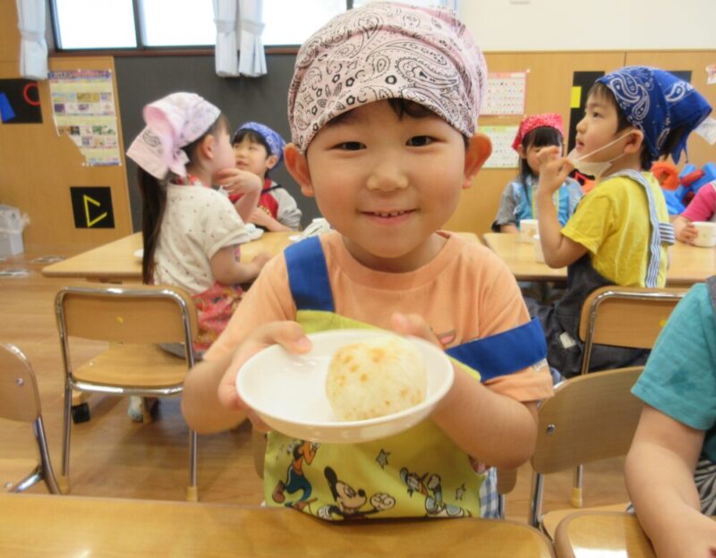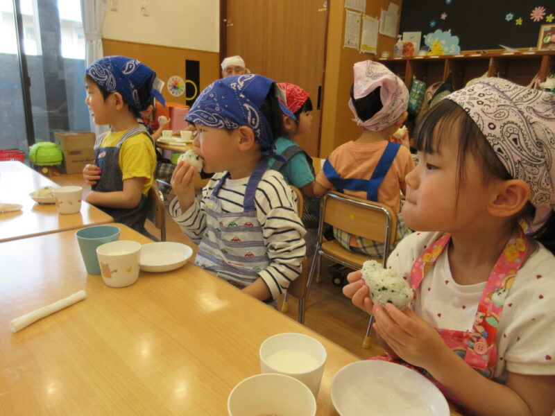 おやつの時間に自分で作ったおにぎりを皆で食べました!