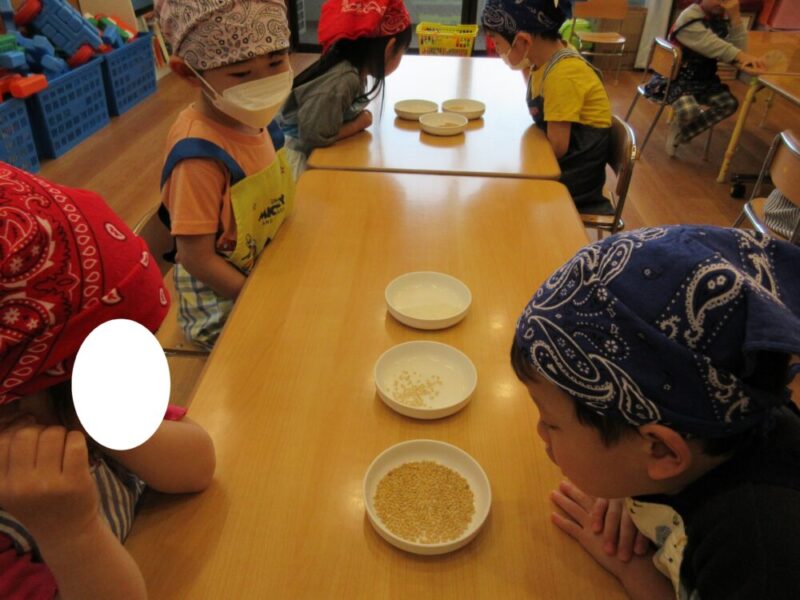 もみ、玄米、白米を用意してもらい手で触れたり観察し、いつも食べているお米がどのような過程で出来ているのかを学びました!