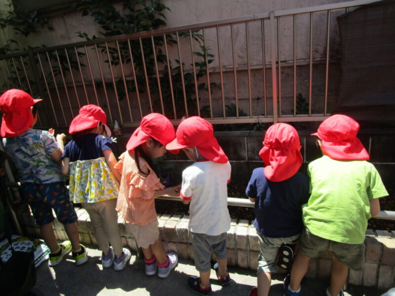 入り口を入った花壇の前にプランターを置きましたので、朝や帰りの際に、お子さんと一緒に観察してみてくださいね!