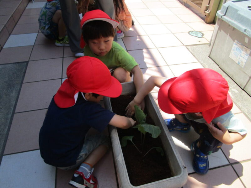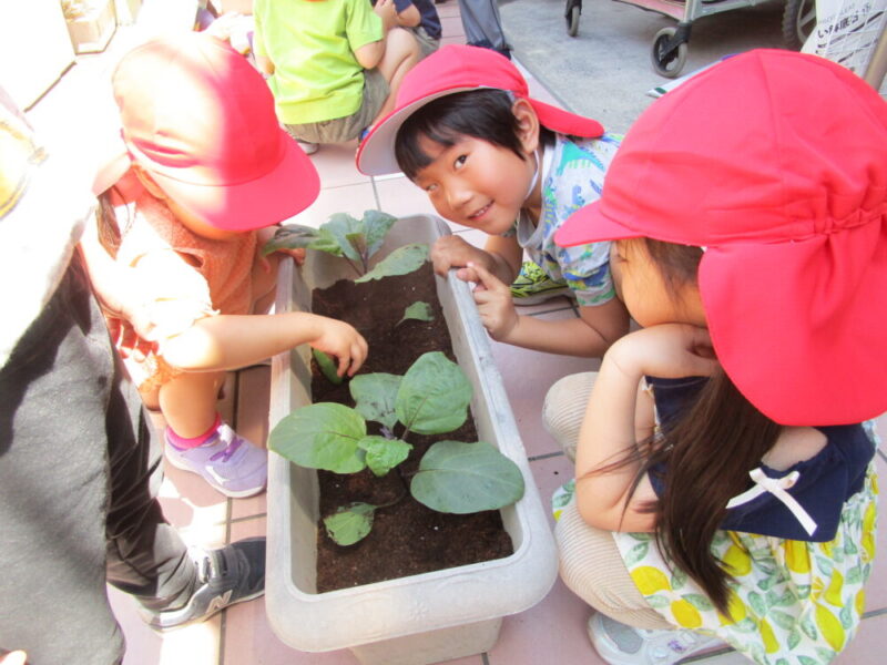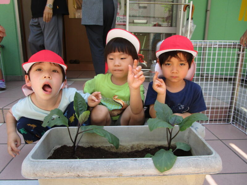 りんご組のみんなで、なすの苗を植えました!