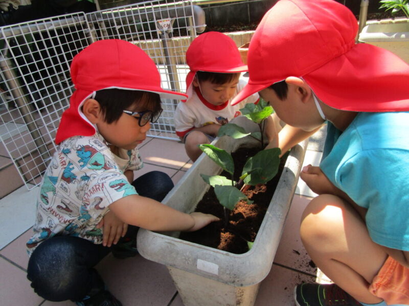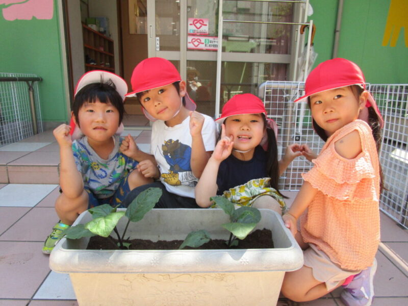 りんご組のみんなで植えたなすがどうか大きく育ちますように!!!
