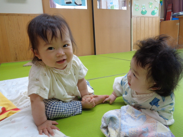 最後は低月齢のお友達が大好きな高月齢のお友達♡関わり方がとっても可愛いです!これからもたくさん遊ぼうね。