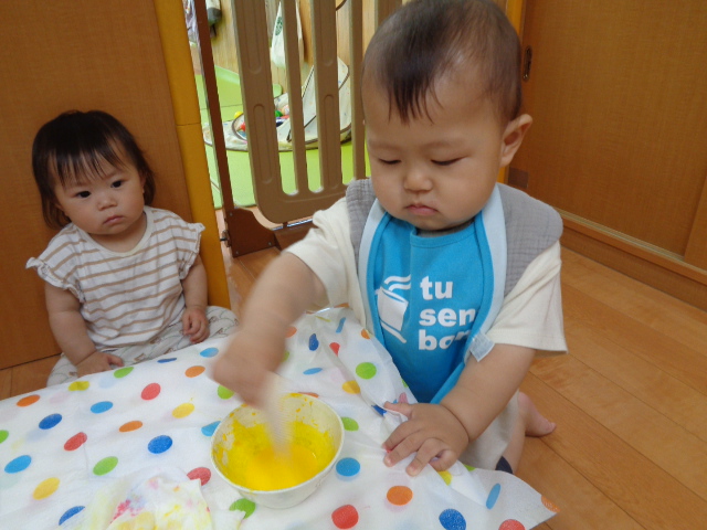 雨が降ったり、暑い日も増えてきて中々お散歩に行けない時もありますが、お部屋の中でも様々な活動を楽しんでいます!