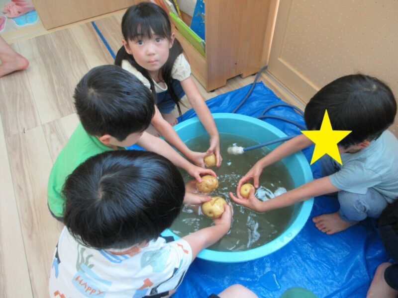 大量のじゃがいもの籠からそれぞれ好きなじゃがいもの選び、とてもうれしそうでした💕お友だちとどっちが大きいか比べている子もいました!