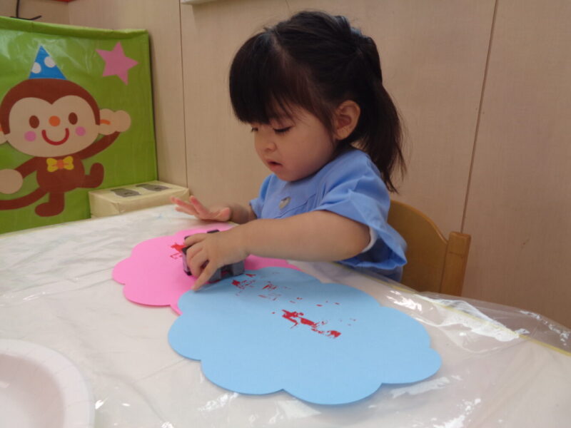 そんな日には室内で製作遊びを楽しんでいるうさぎ組の子どもたち。