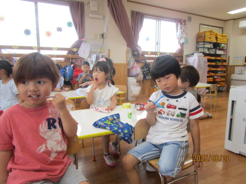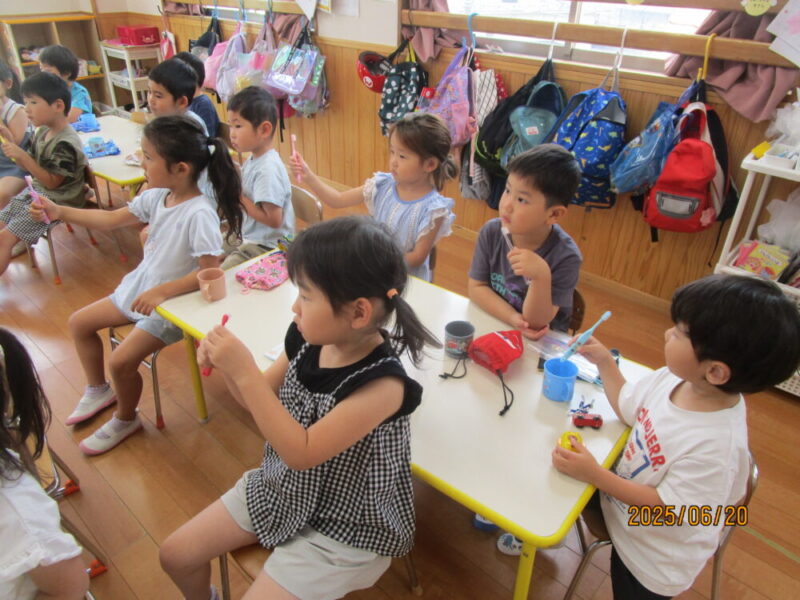 普段は持ってこない歯ブラシもお家から持参し、始まる前からワクワクしていた子どもたちです。