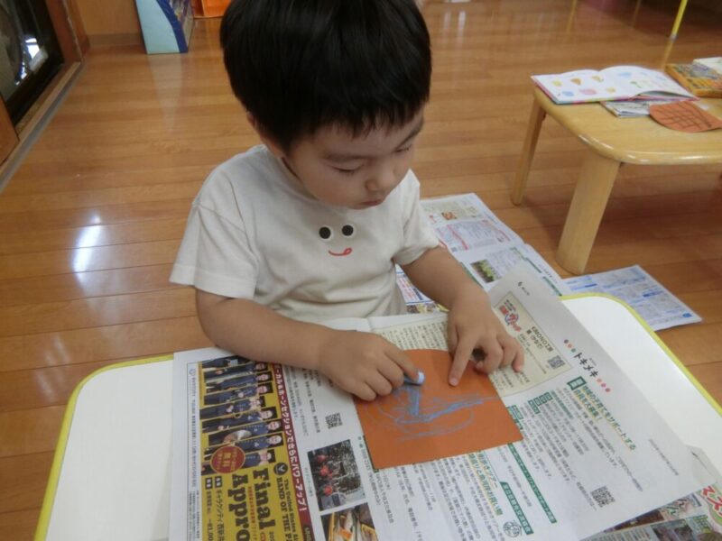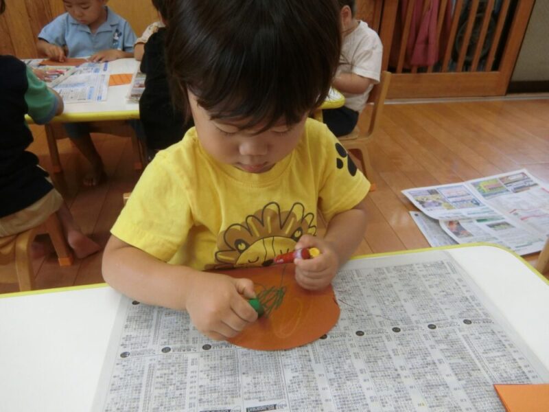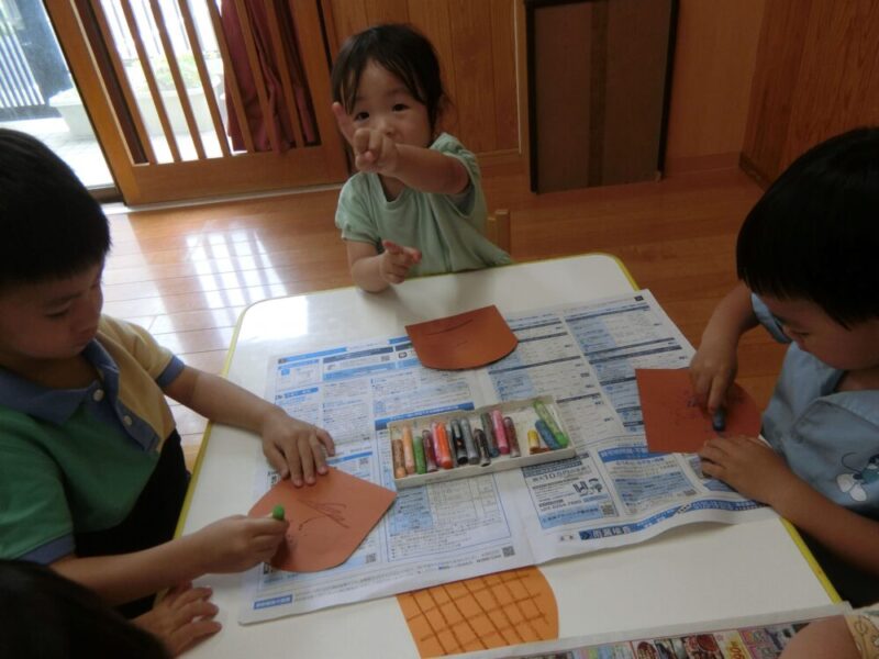 まずはみんなでアイスを作ろう♪ということで、コーンの画用紙にカキカキ🖍