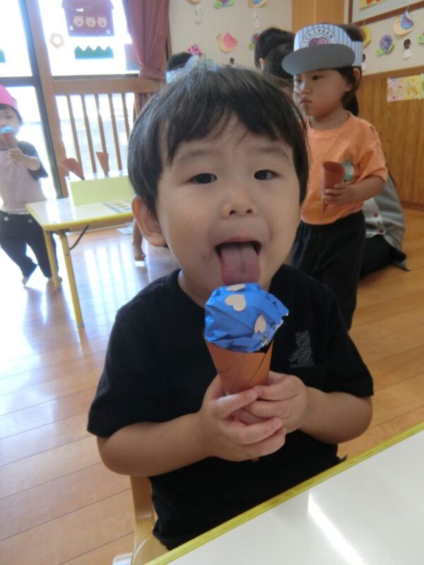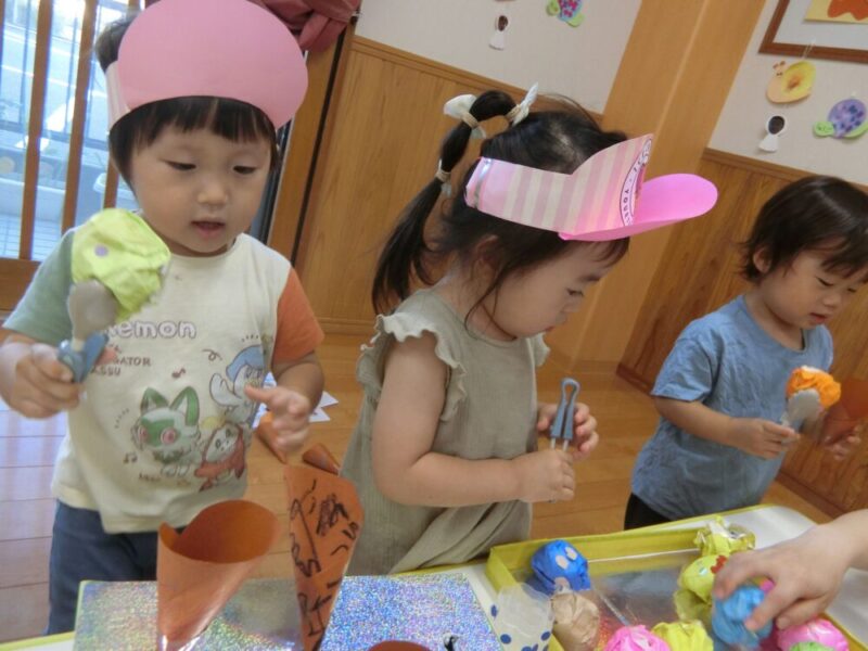 子ども同士で会話を楽しみながら遊ぶ姿が見られました♪これからもアイス屋さんごっこ楽しんでいこうね🍦