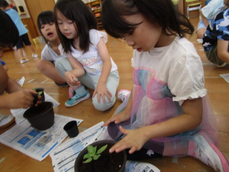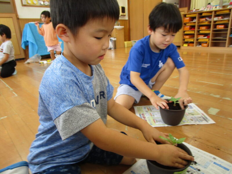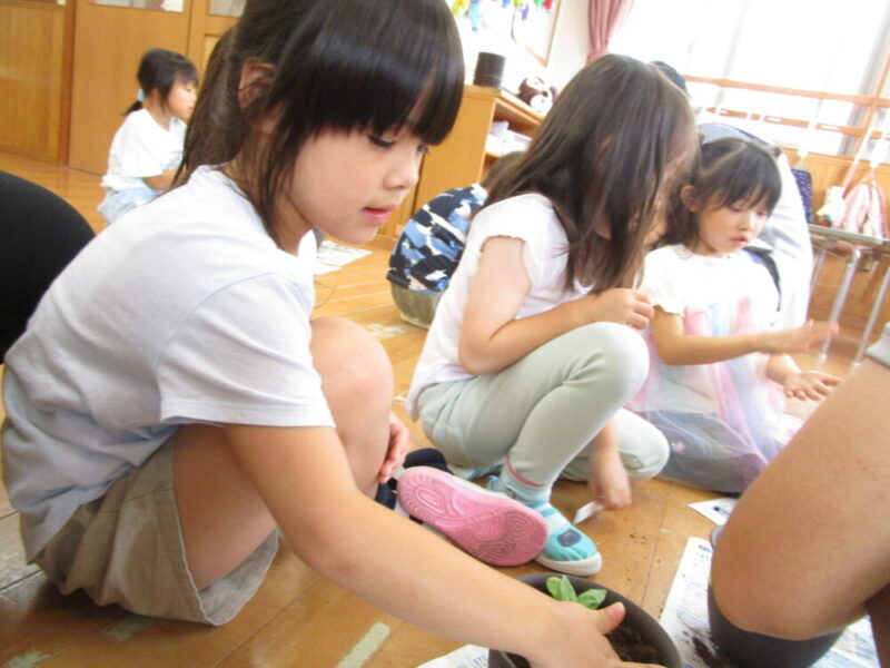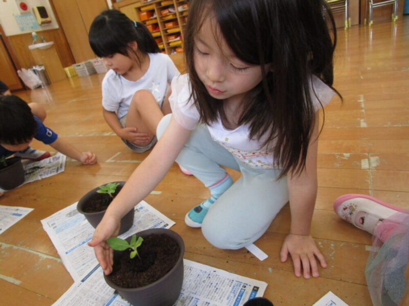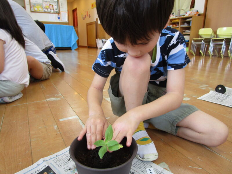 6月の上旬にひまわりの種を植えました。「誰が一番きれいに咲くか競争だ!」と皆の掛け声があり、気合十分なぶどう組さん!