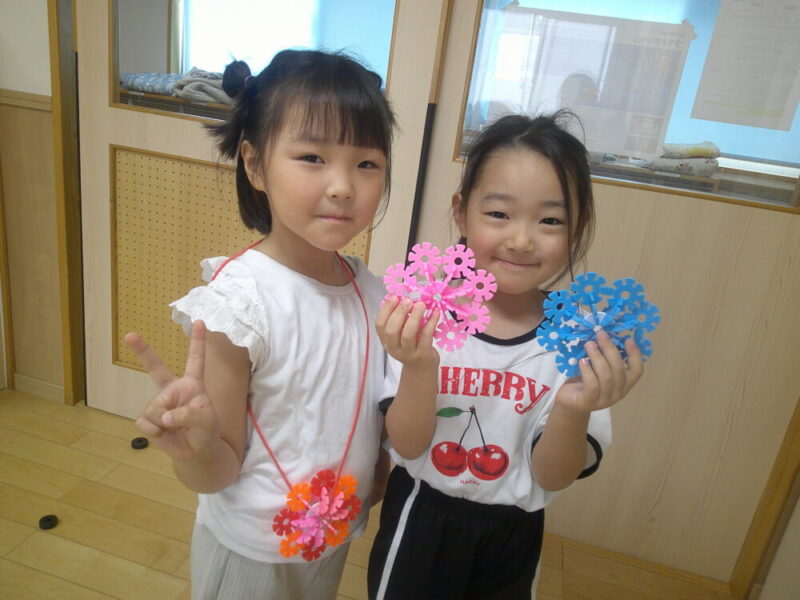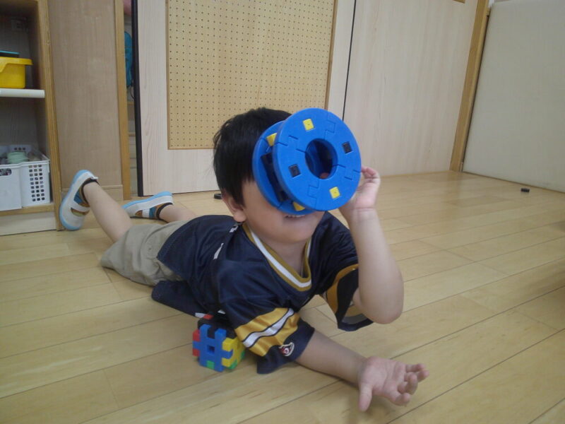 1番人気は井型ブロック。1人で作る子もいれば、数人で大きな大作を作る子たちもいます。作る合間にジャンケンをしたり、とても楽しそう♪