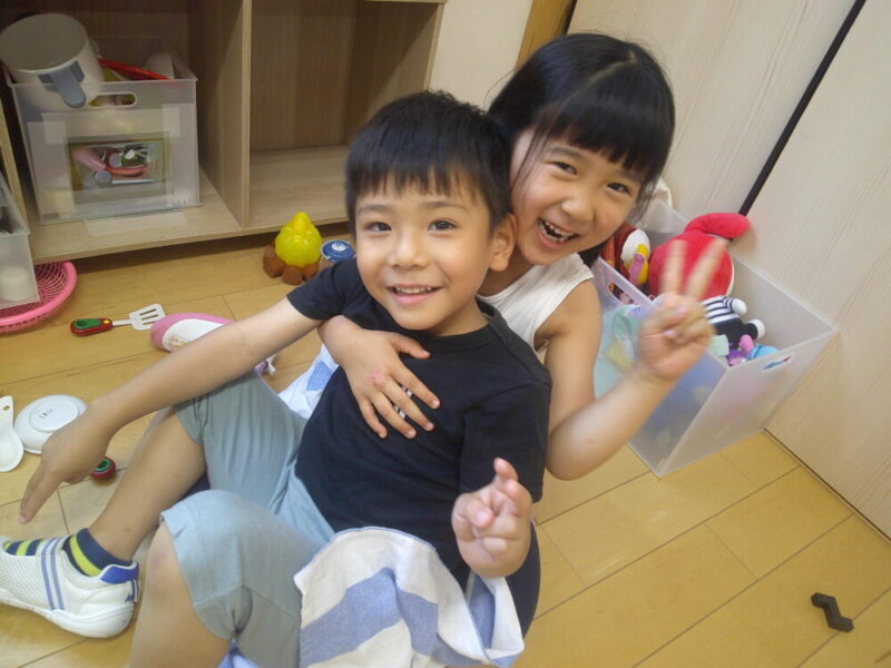 女の子と男の子が仲良しなクラス。ままごとで家族ごっこを楽しむ姿が見られました。