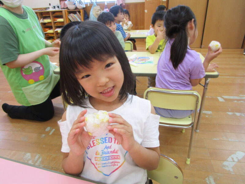 食育でおにぎりを作りました~北千住園・ぶどう組~