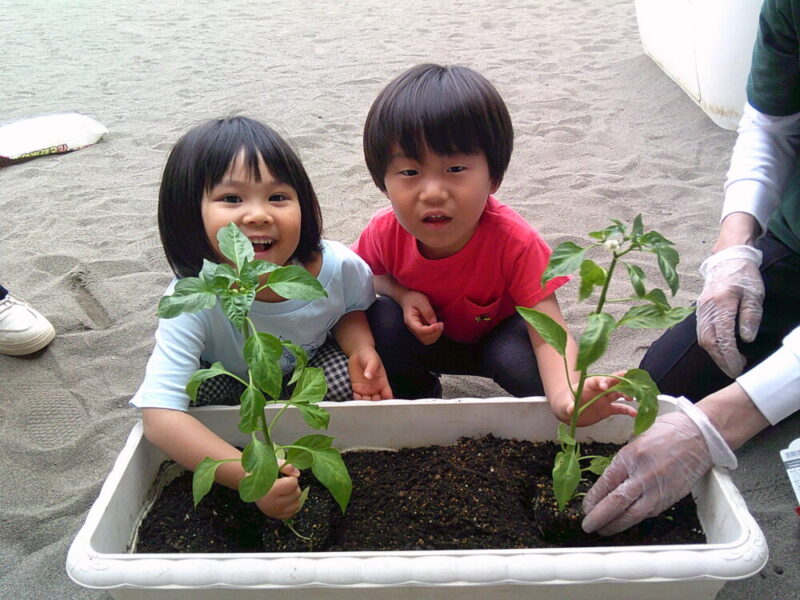 りんご組では、夏野菜にパプリカの苗を植えました!