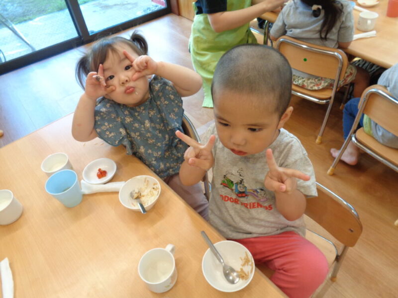 栄養士さんにお願いして、おやつの時間に調理して提供していただきました💓