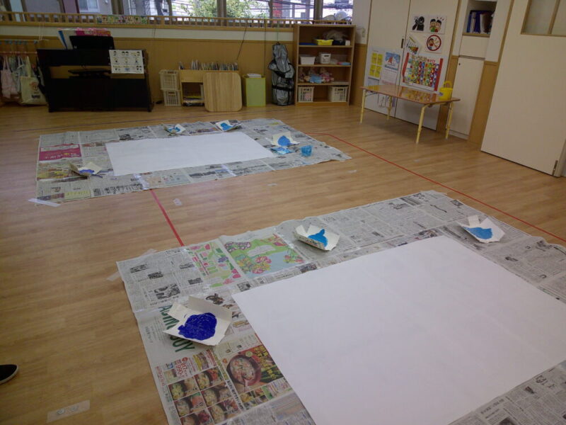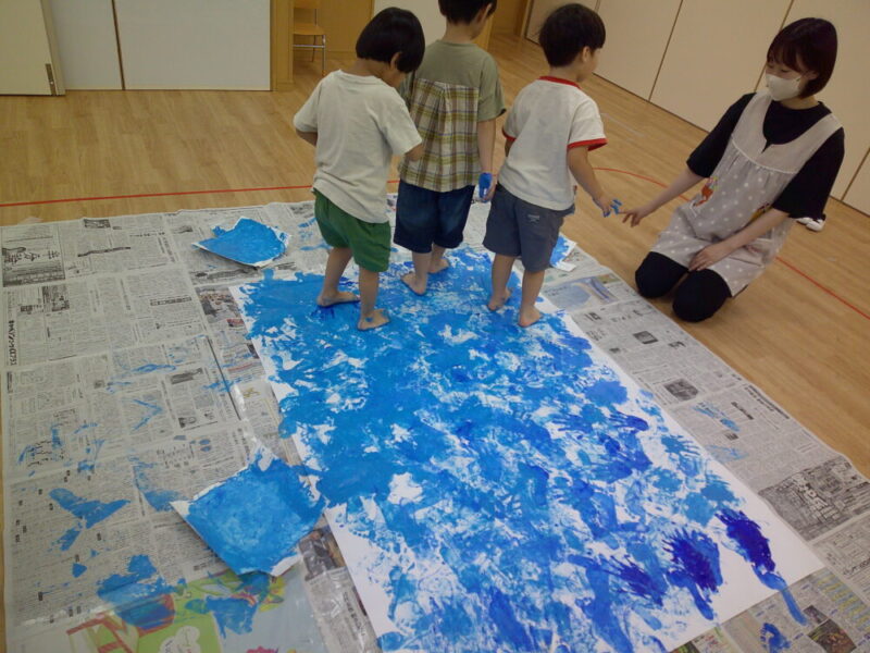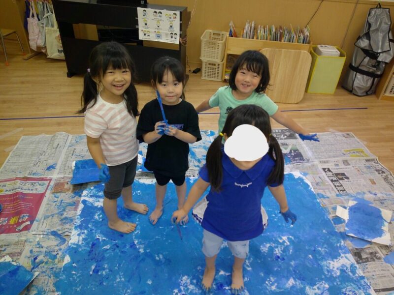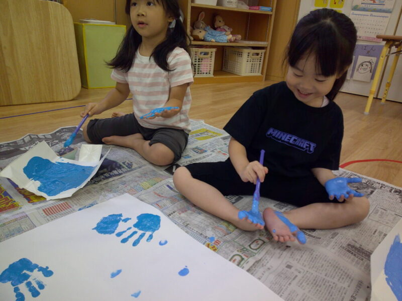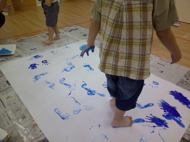 女の子たちもスイッチが入り画用紙の上を歩いたり、手をペタペタとしています🙌
