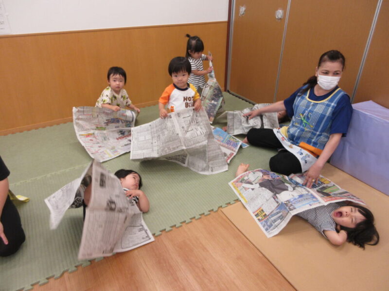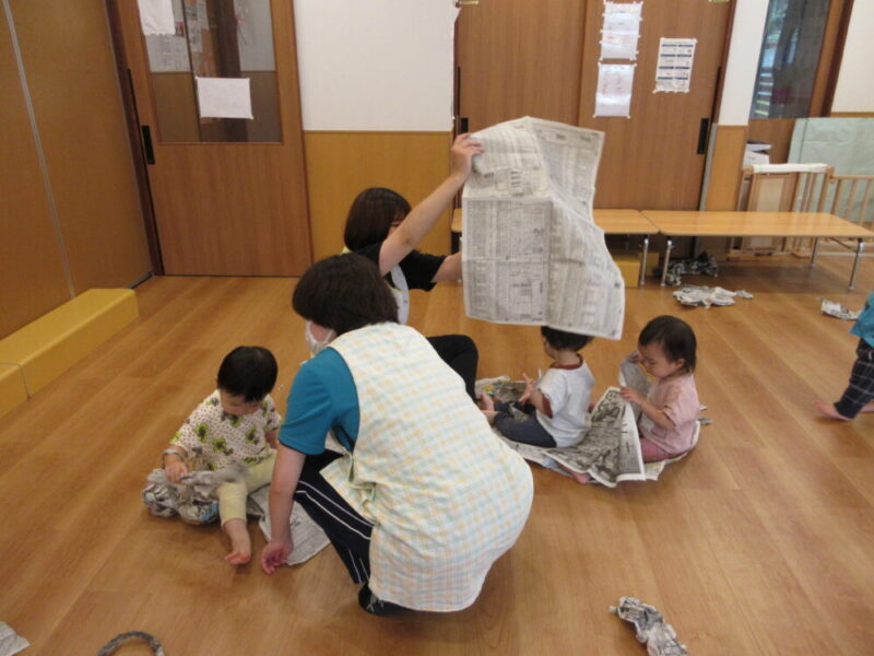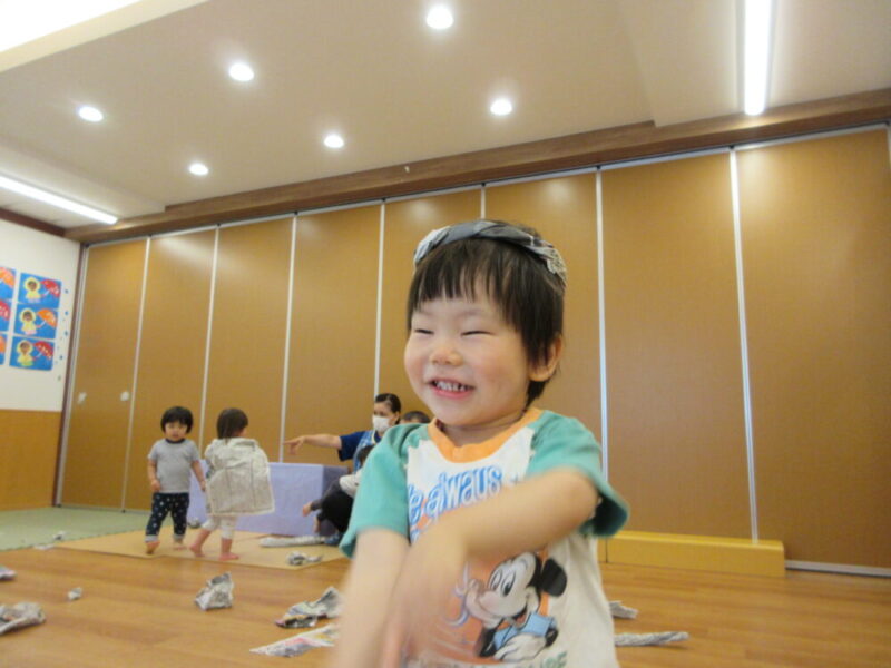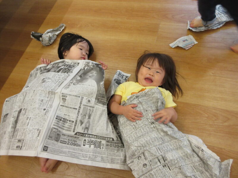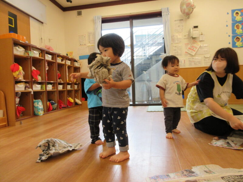 新聞紙遊びをしました♬ ~西新井南園・ばら組~