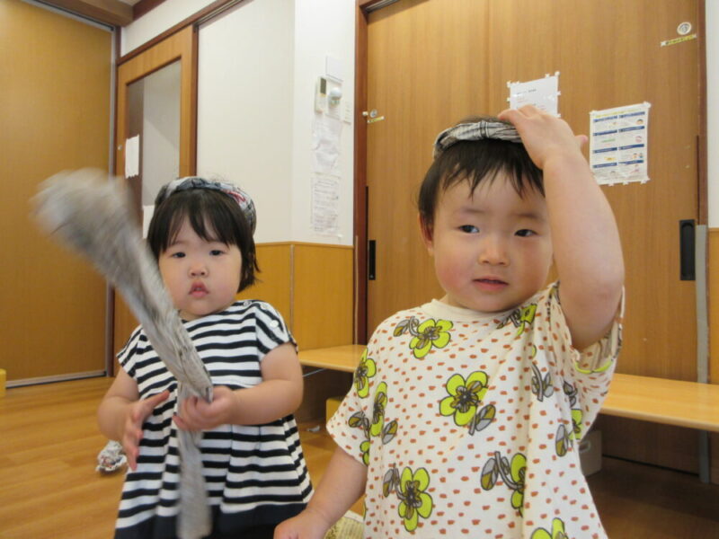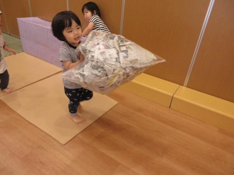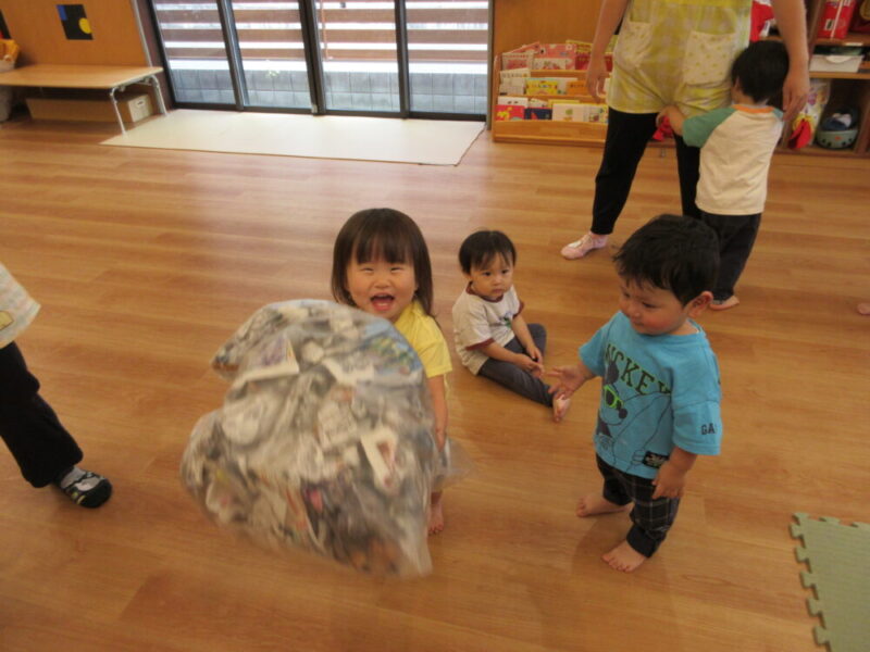 新聞紙を丸めてボールのように投げて遊ぶ子どももいます😊