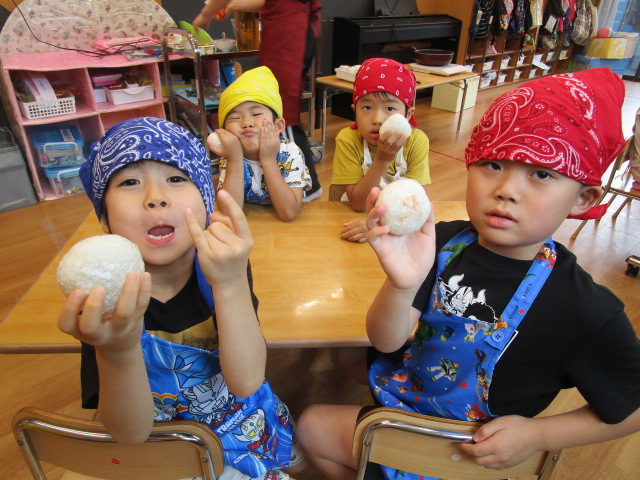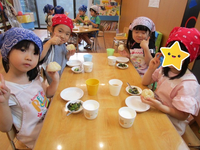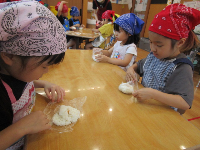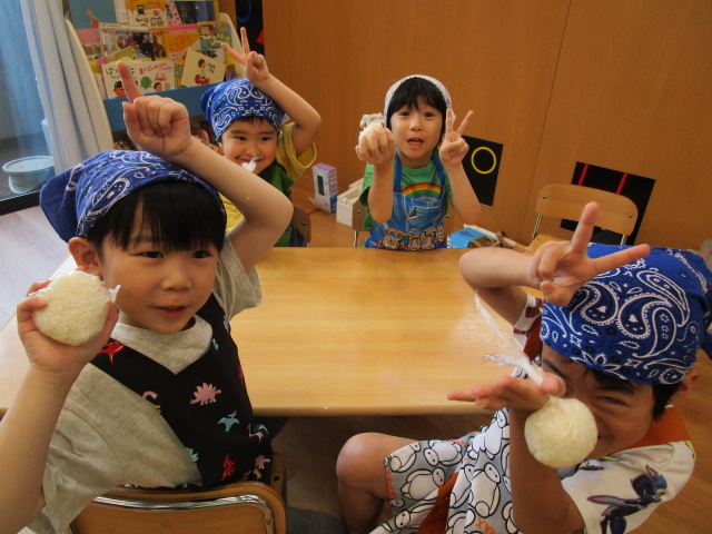みんな上手に包んで、おにぎりの形を作っていました😊