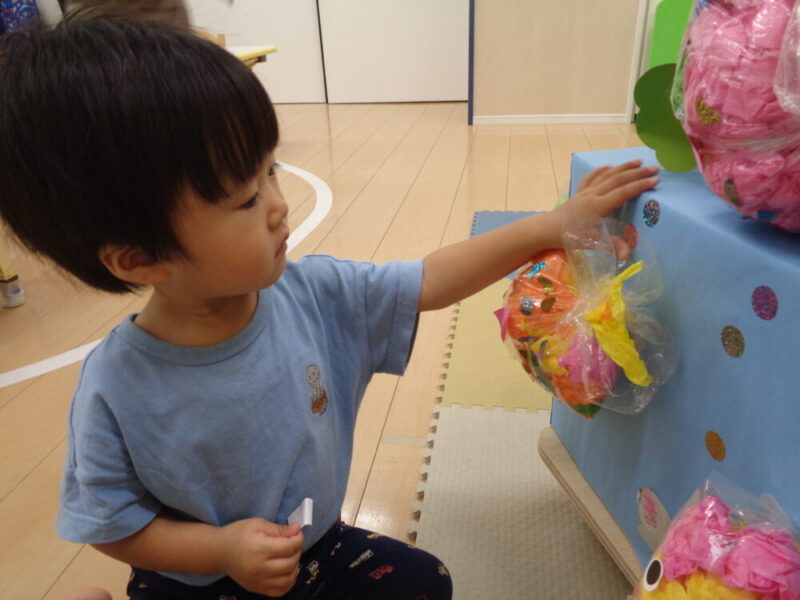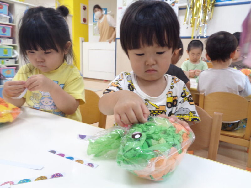 最後は完成した魚と山車にもキラキラシールを貼り、夢中で飾りつけをしていました✨