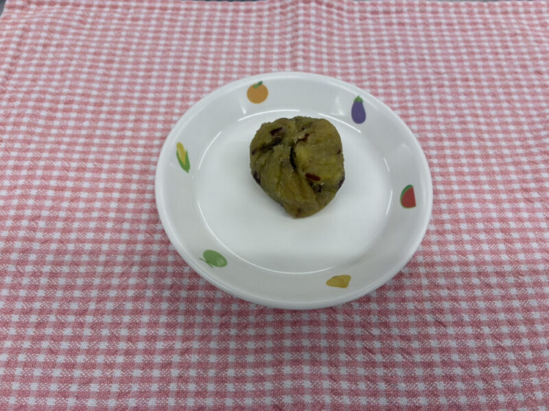 かんころ風はつぶしたさつま芋とあずきを混ぜて砂糖と塩で茶巾寿司のように丸くしました。優しい甘さのあるおやつで子ども達も喜んでいました。