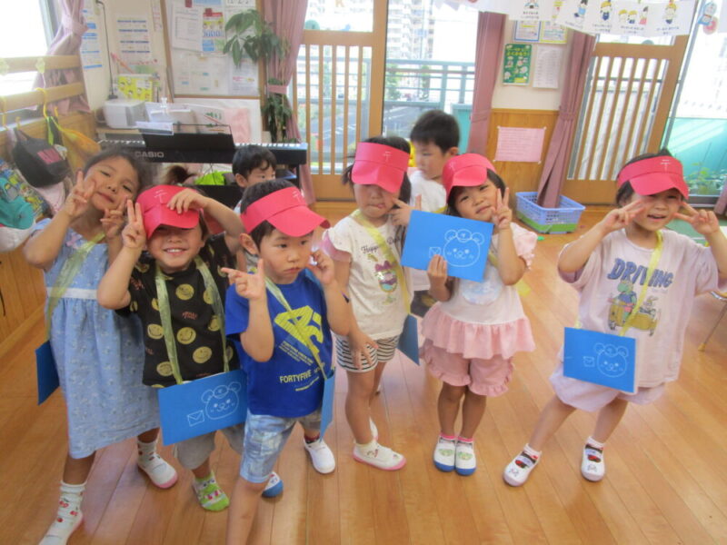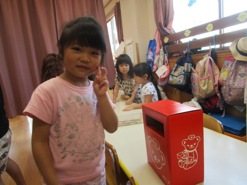 郵便屋さんになり切った子どもたちが、