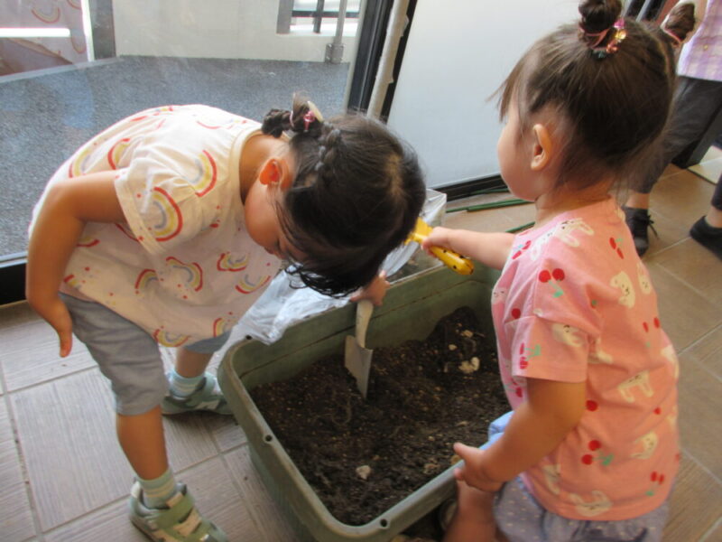 「ミニトマトの収穫」は、プランターに土を入れる→苗を植える→水をあげる(毎日)→収穫する→食べる→土を片付ける をゆり組みんなで協力をし、すべて行うことが出来ました✨