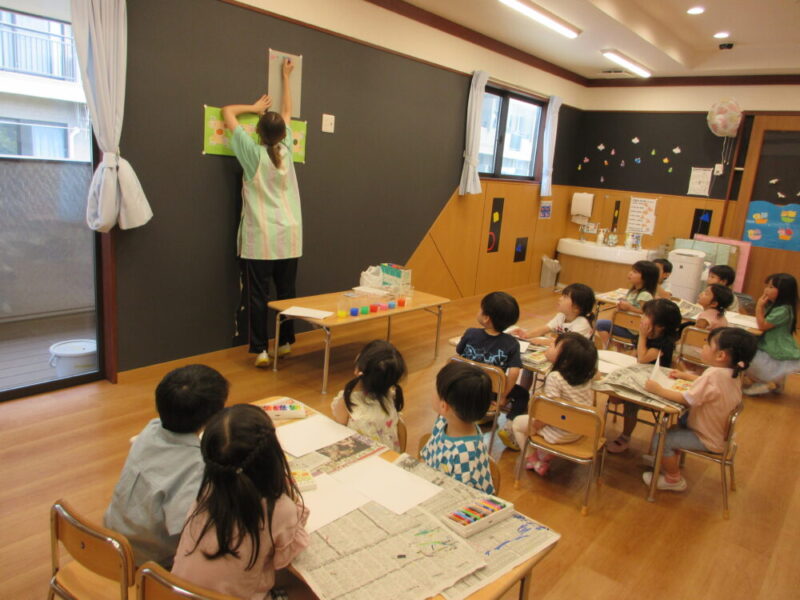 その後に一人ずつ混ぜたい色を聞いて、何色になるのか実験 をしてみました。子どもたちはとても興味津々です😁