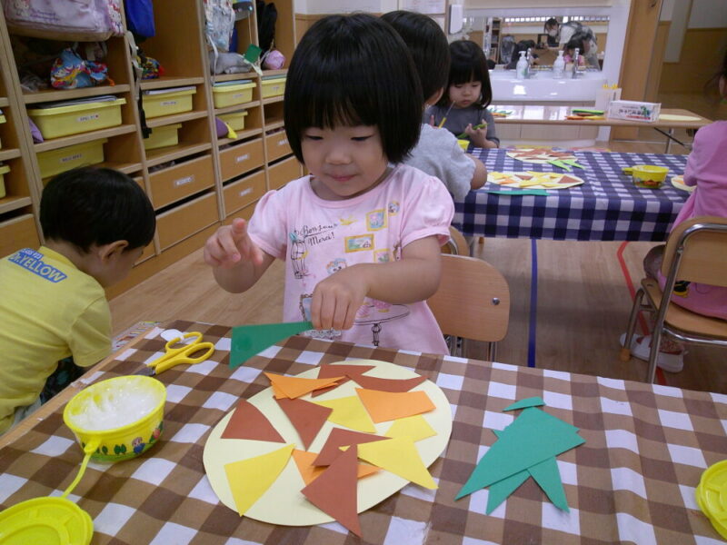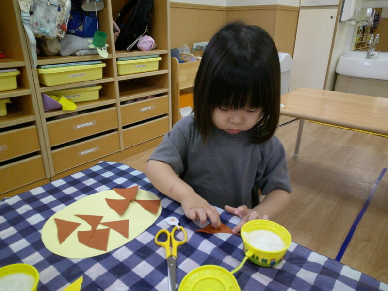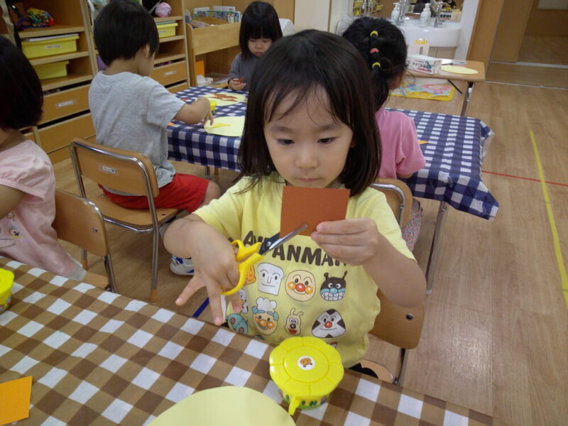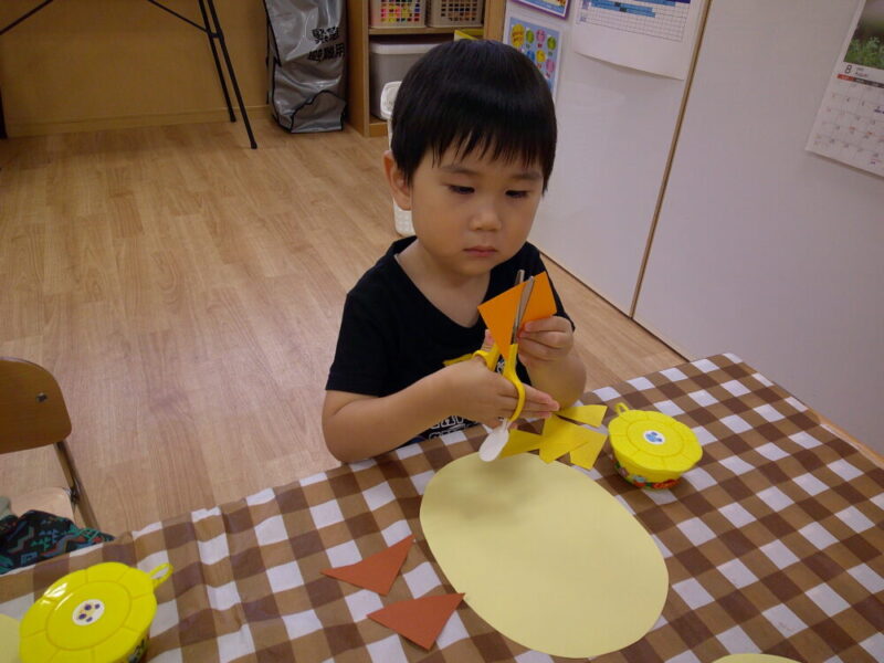 角から角へ一直線に切るのは難しいですが、ハサミの角度を子どもたちなりにうまく調整して切る姿が見られましたよ✨