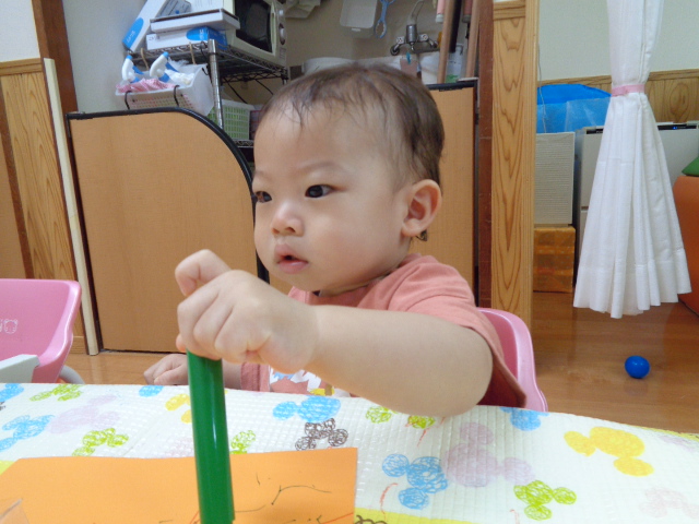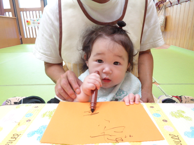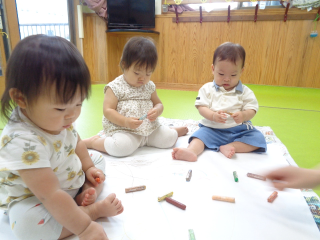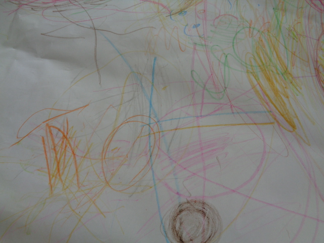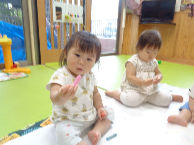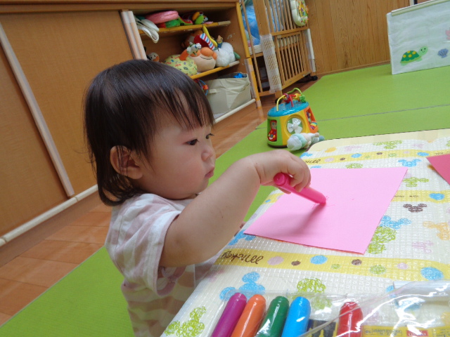 「わあ~」の声で、クレヨンを出すと、色々な色を手に取り書き始めました。