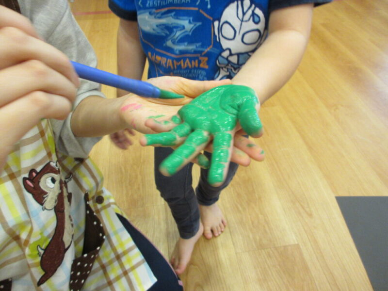 筆で手を塗る時に「くすぐったいよ~~」と笑っている姿も見られました😊