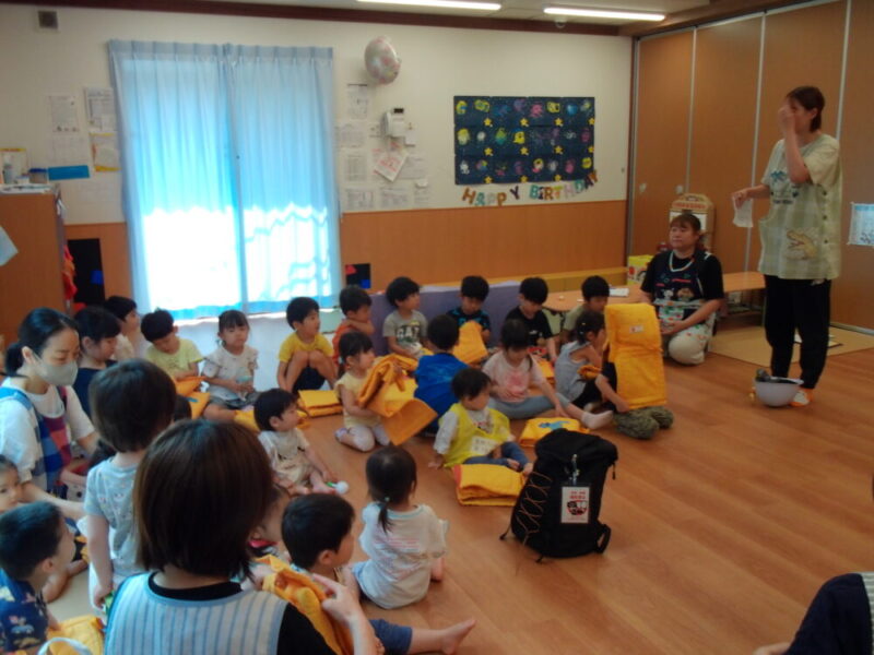 みんなで火事の時の大事なお約束を確認したり、先生達は少ない職員数で子どもの安全を確保するには何が大事なのか、気付いたことを話しました