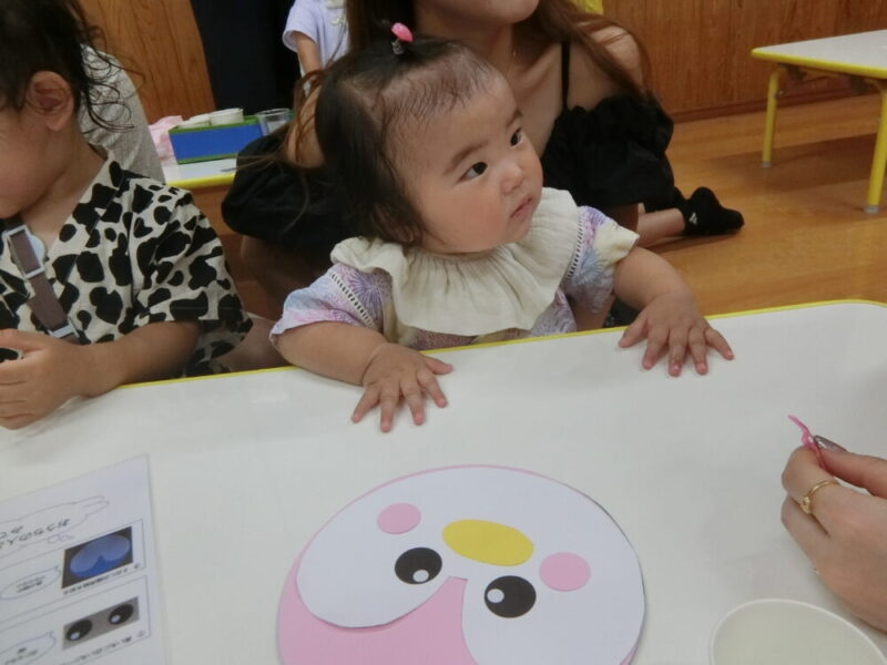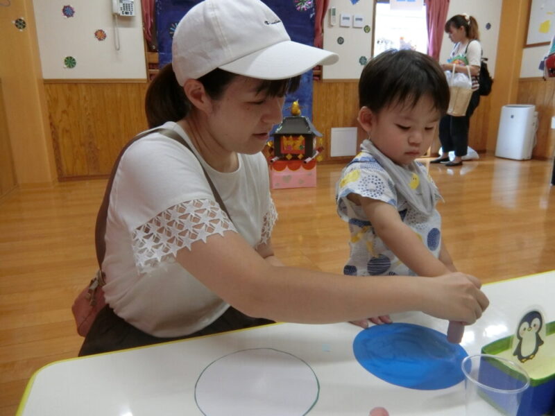 おうちの人と一緒にくじら、ぺんぎん、しろくまの中から選んでうちわを作りました♪のりでペタッとしたり、お絵描きしたり、とっても上手に出来ました👏