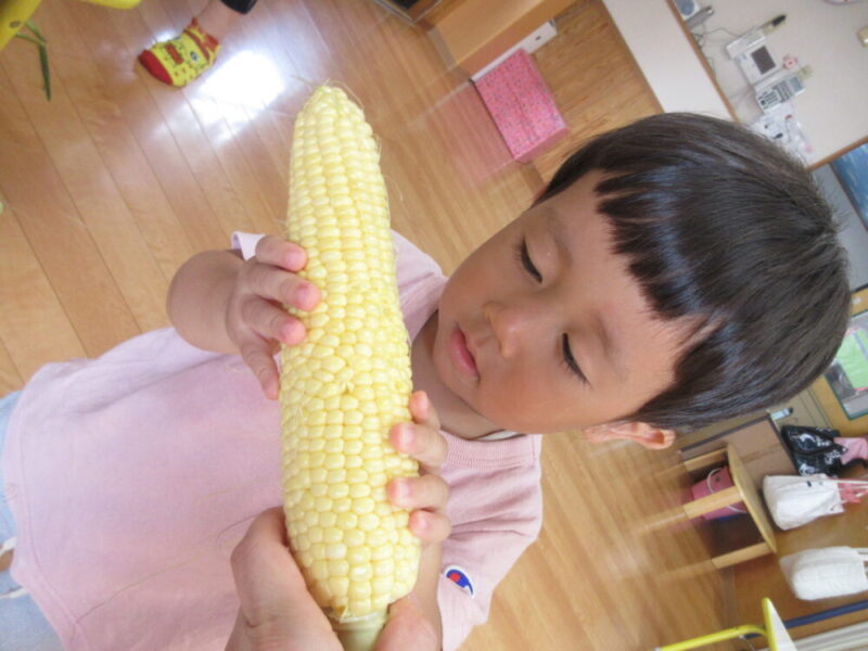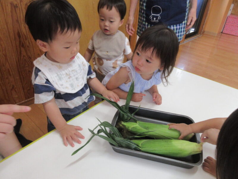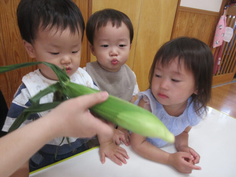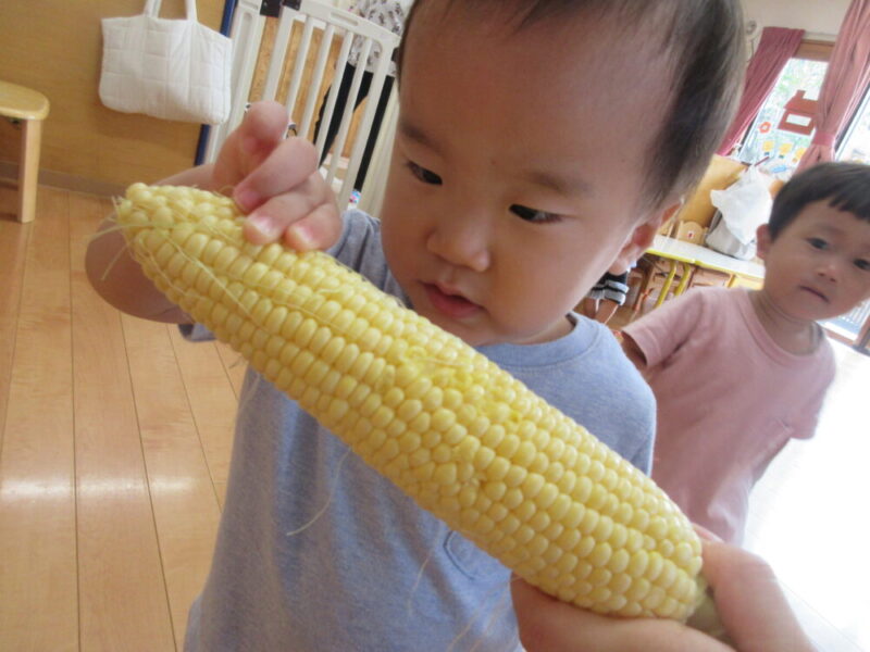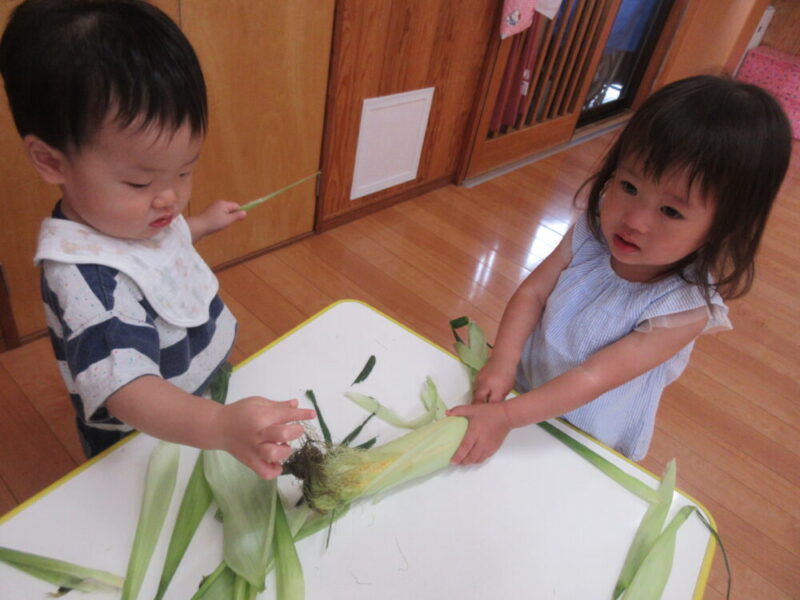 西新井園うさぎ組🐰食育🌽とうもろこしの皮むき体験!