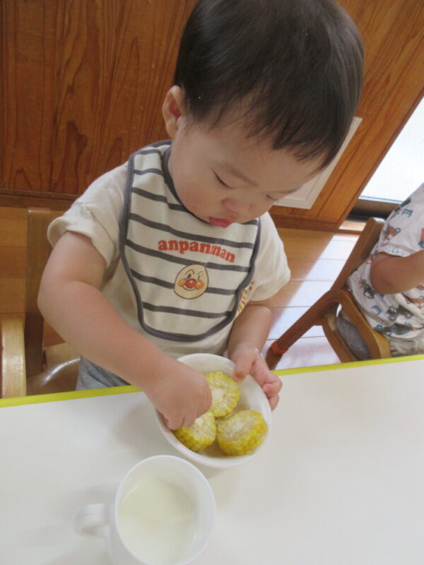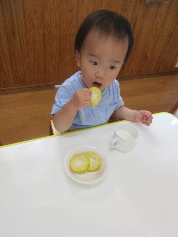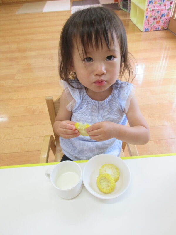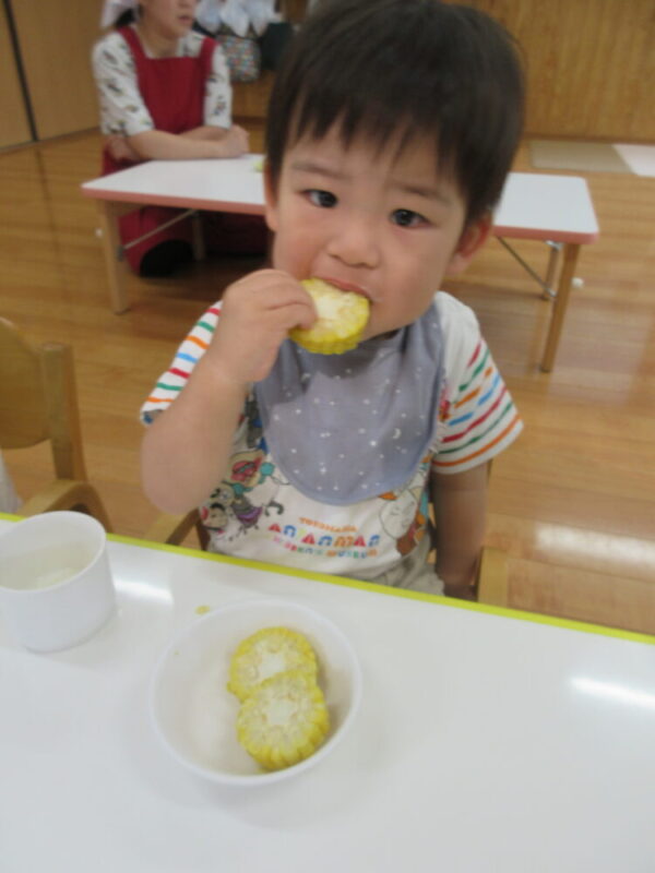 むき終わったとうもろこしは、栄養士さんにお願いをしておやつで食べられるようにしてくれました✨
