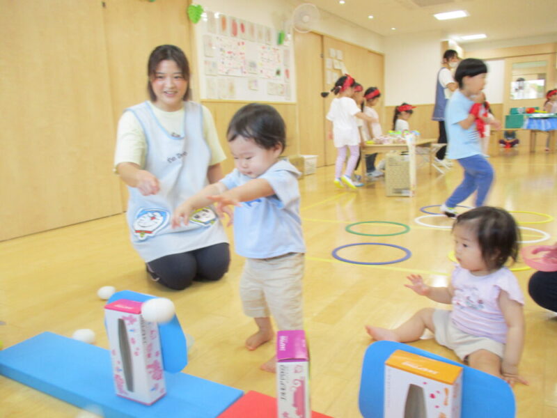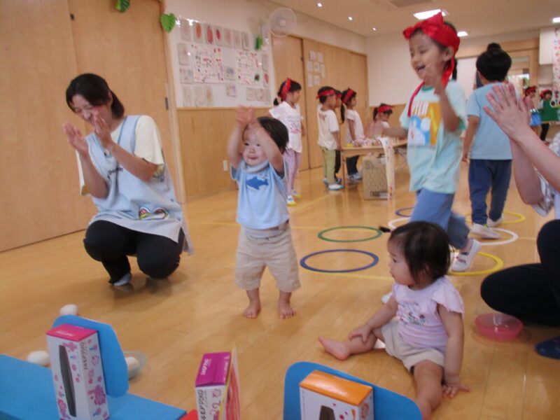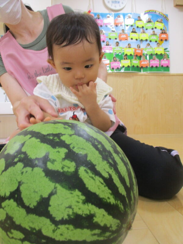 西国分寺園【0歳児 ももぐみ】今月はスイカ割となつまつりごっこをしてきました!