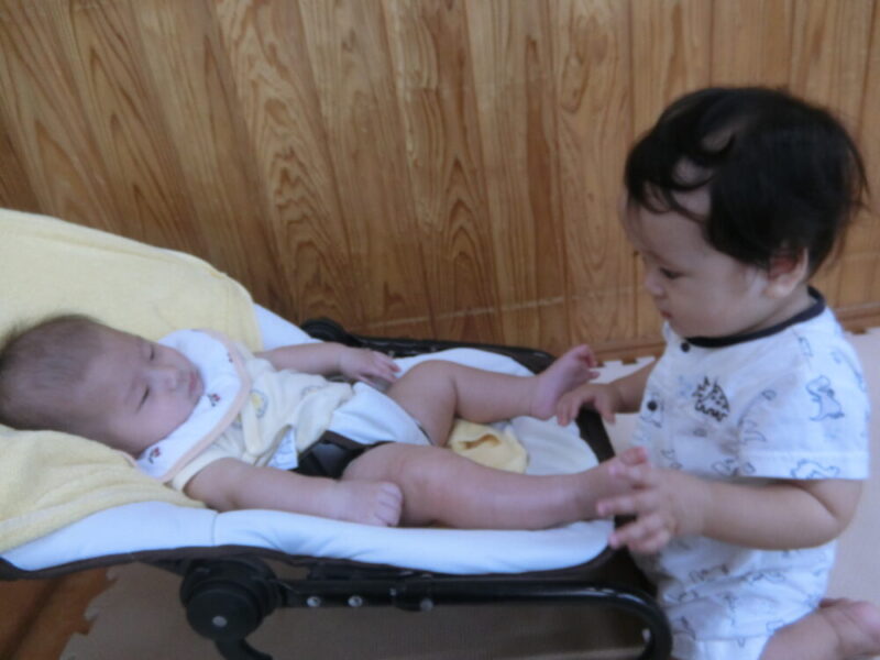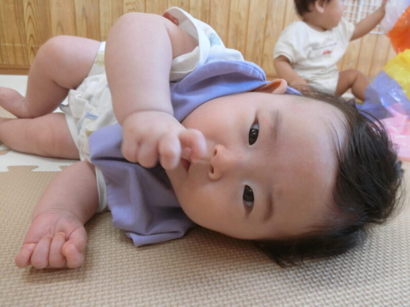 今では頭をなでなでしたり、お腹をトントンしたり、保育者の動きを真似て、関わりを楽しんでいます🤭💞