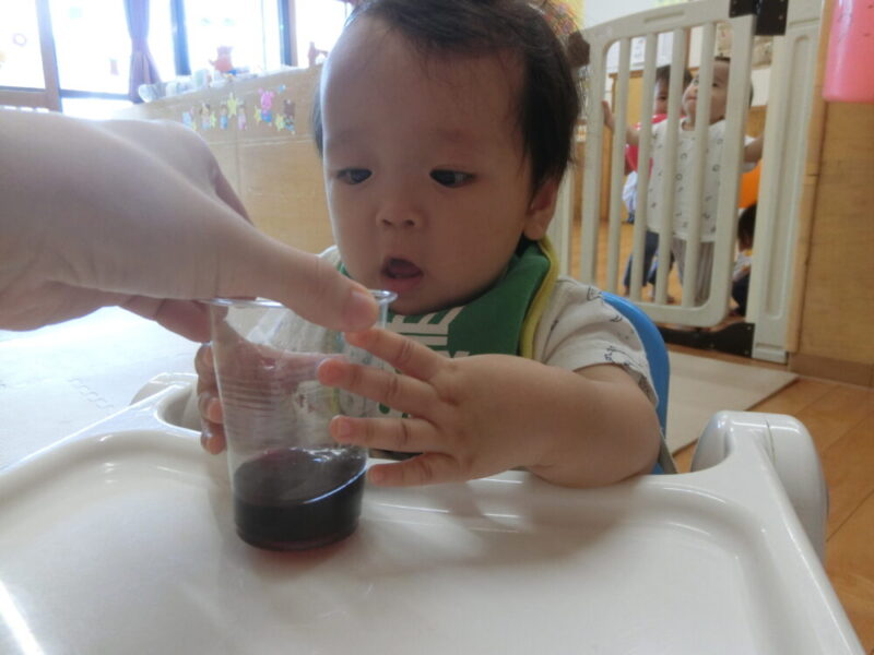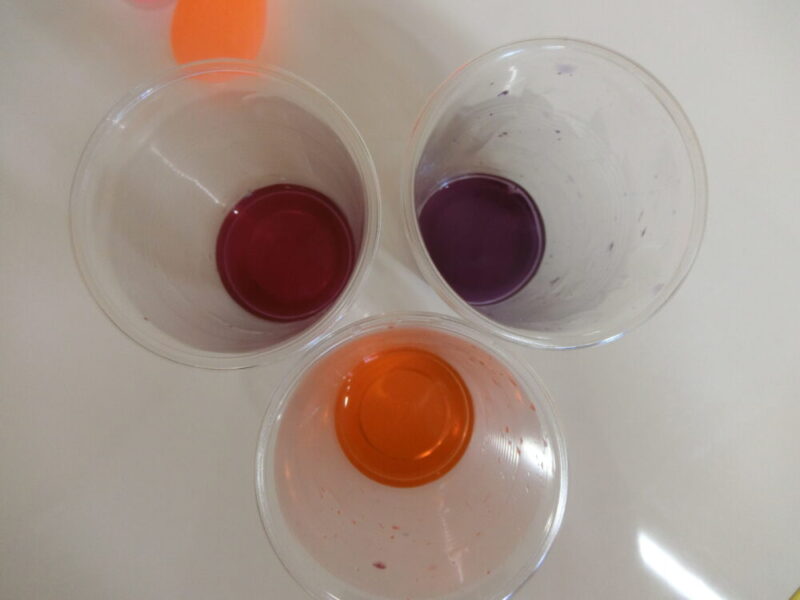 完成した色水にクエン酸や重曹を入れて色が変化する実験も楽しみました✨