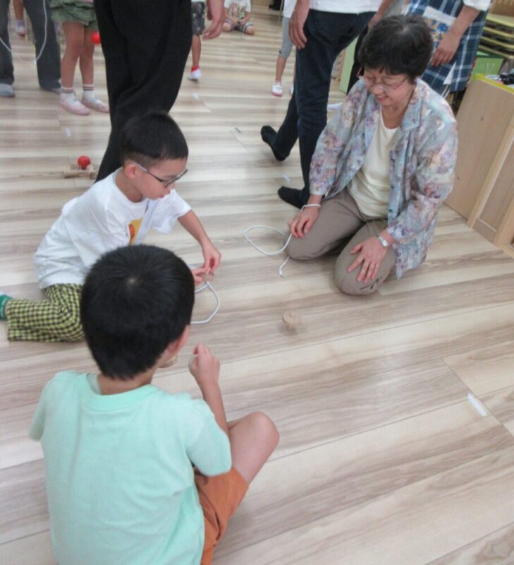 幼児クラスでは、昔ながらの玩具を教えてもらい、祖父母の皆様と一緒に遊びました!