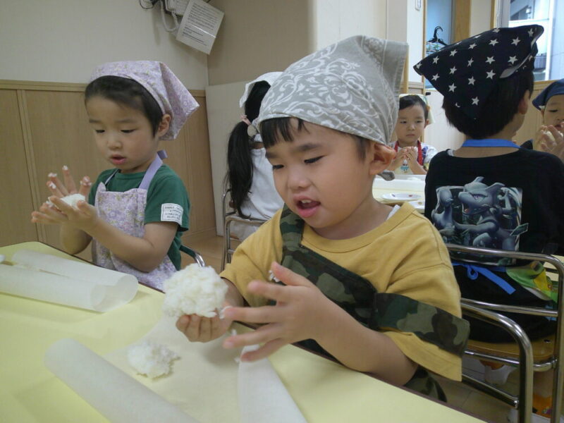 八広園【4歳児つき組】おやつにおはぎを作ったよ