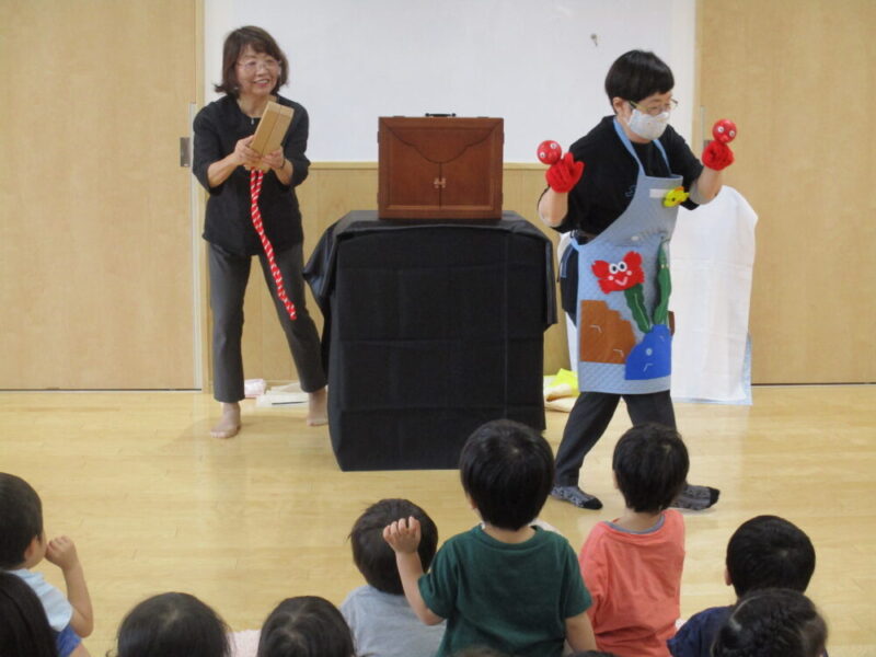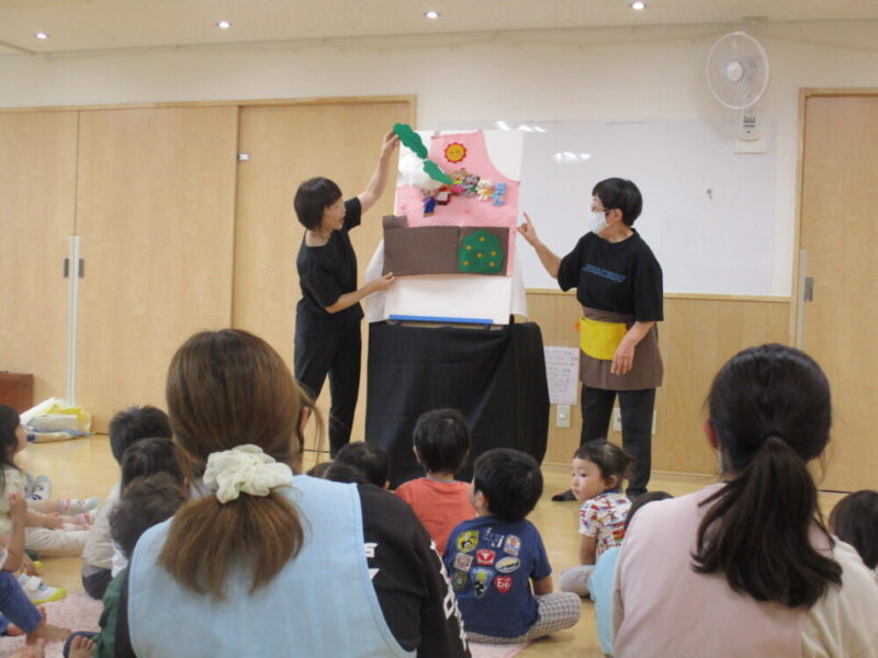歌を歌いながらのペープサートが始まると