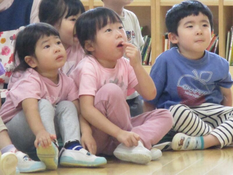 おうちの方と一緒に、じーっと紙芝居を見つめる姿がとても愛らしかったです。