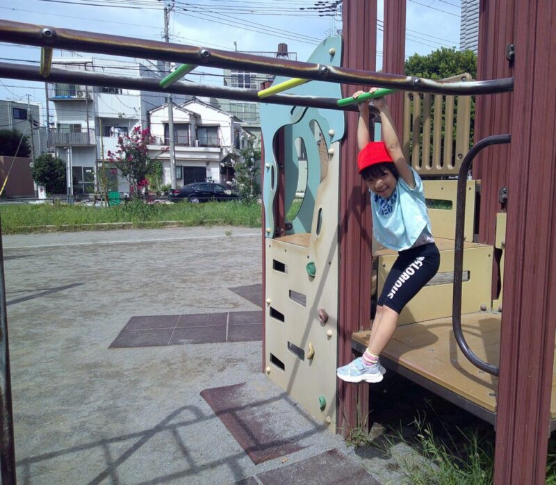 うんていに挑戦し、ぶら下がったり少しずつですが前に進んだりと、とても楽しそうでした。