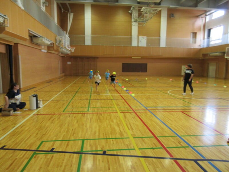 本日は、小学校の体育館に遊びに行き、お遊戯をしたり、かけっこをして過ごしました!!