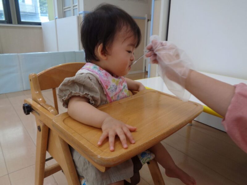”はやくちょうだい!”の気持ちが抑えきれず、大きな声をあげて訴えていたり、自分でスプーンを使って一生懸命食べるお友だちもいます✨自分で食べられたときの嬉しそうな表情と、美味しいご飯にご満悦の表情は、見ていて幸せな気持ちになりますね😊