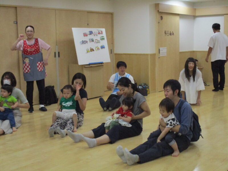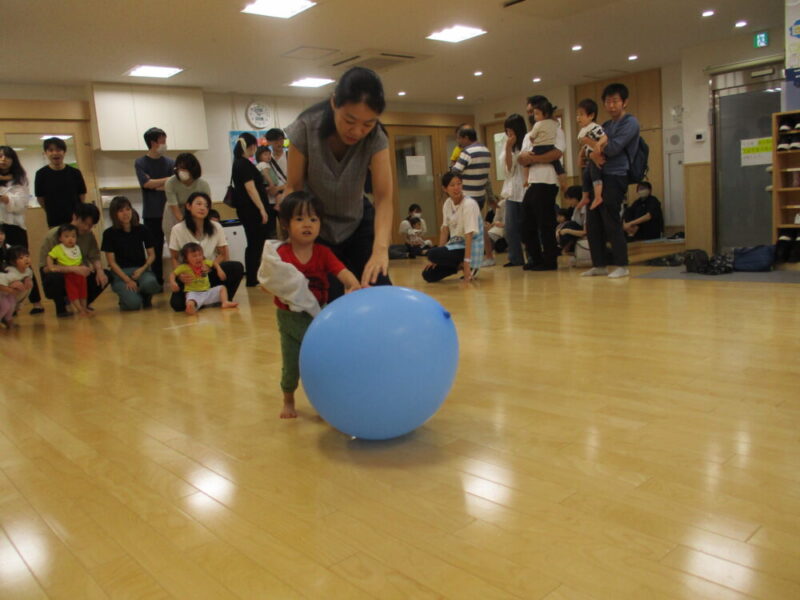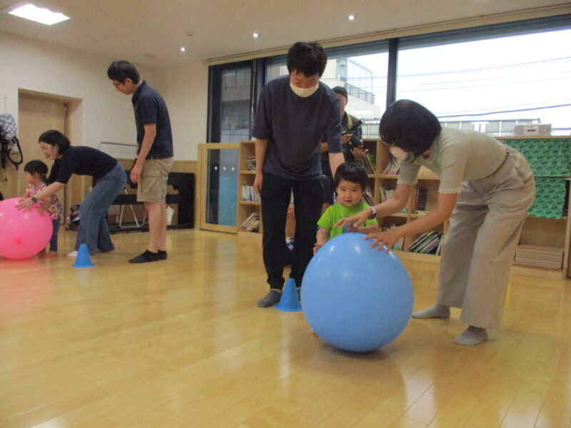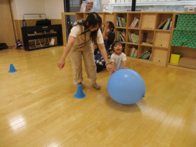 歌を楽しんだ後は、パパママと体を動かして遊びます。