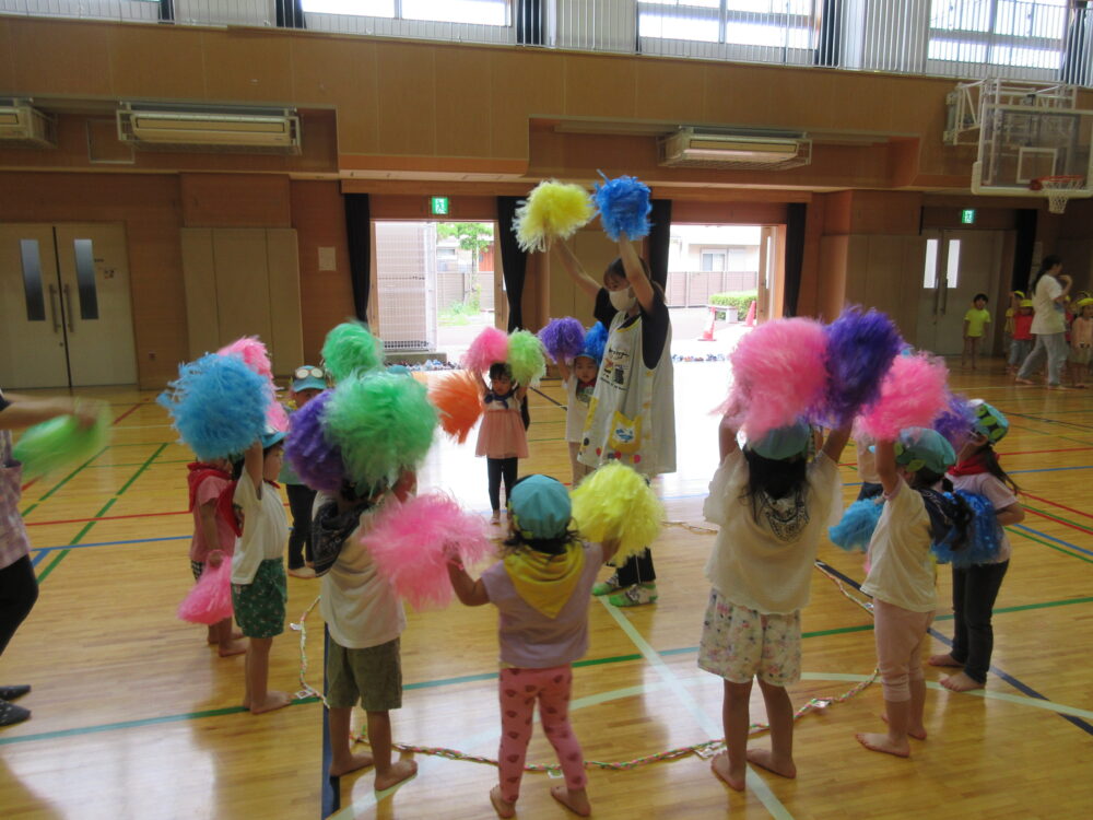 自分の好きな色のポンポンを持って可愛く踊っています♫