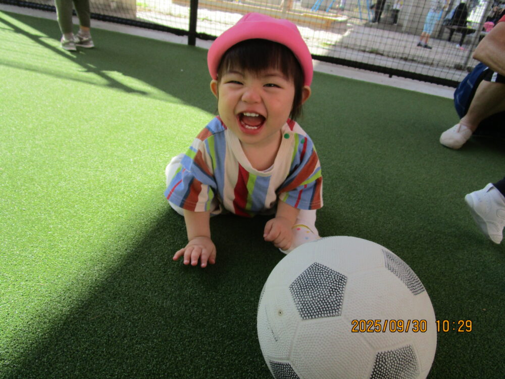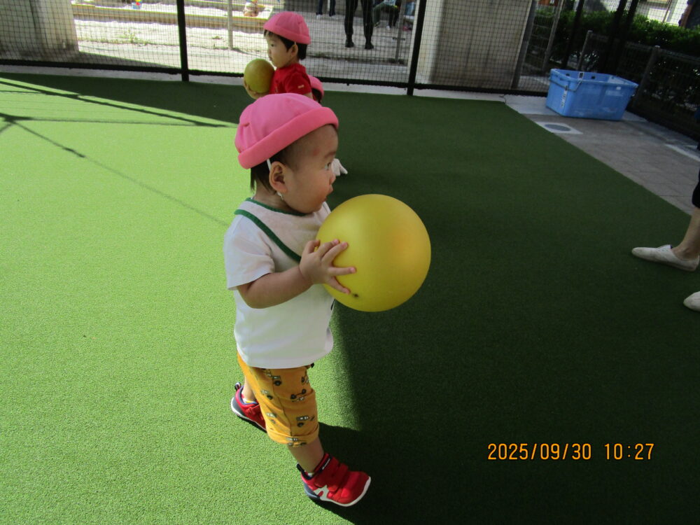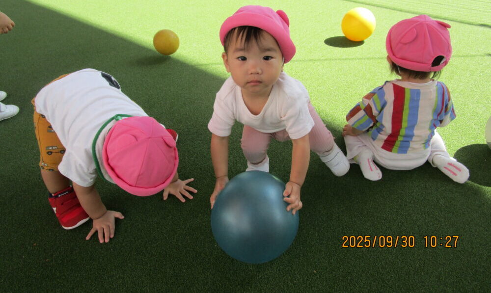 早速ボールを取ると、持ち歩いたり、転がしたボールを追いかけたりして遊んでいました。